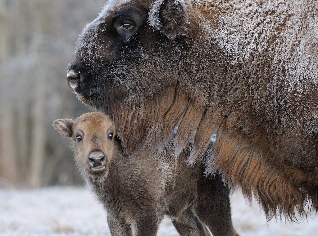 A storm dusts oaks with snow on the bank of the Nerussa River